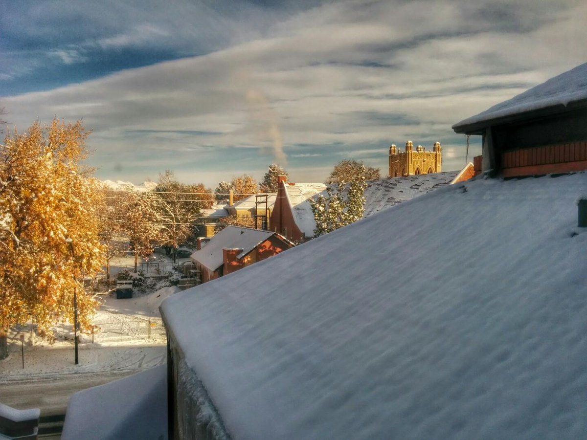 View out of my Hotel room this morning. Winter Wonderland Boulder :-) (@ Central Boulder)